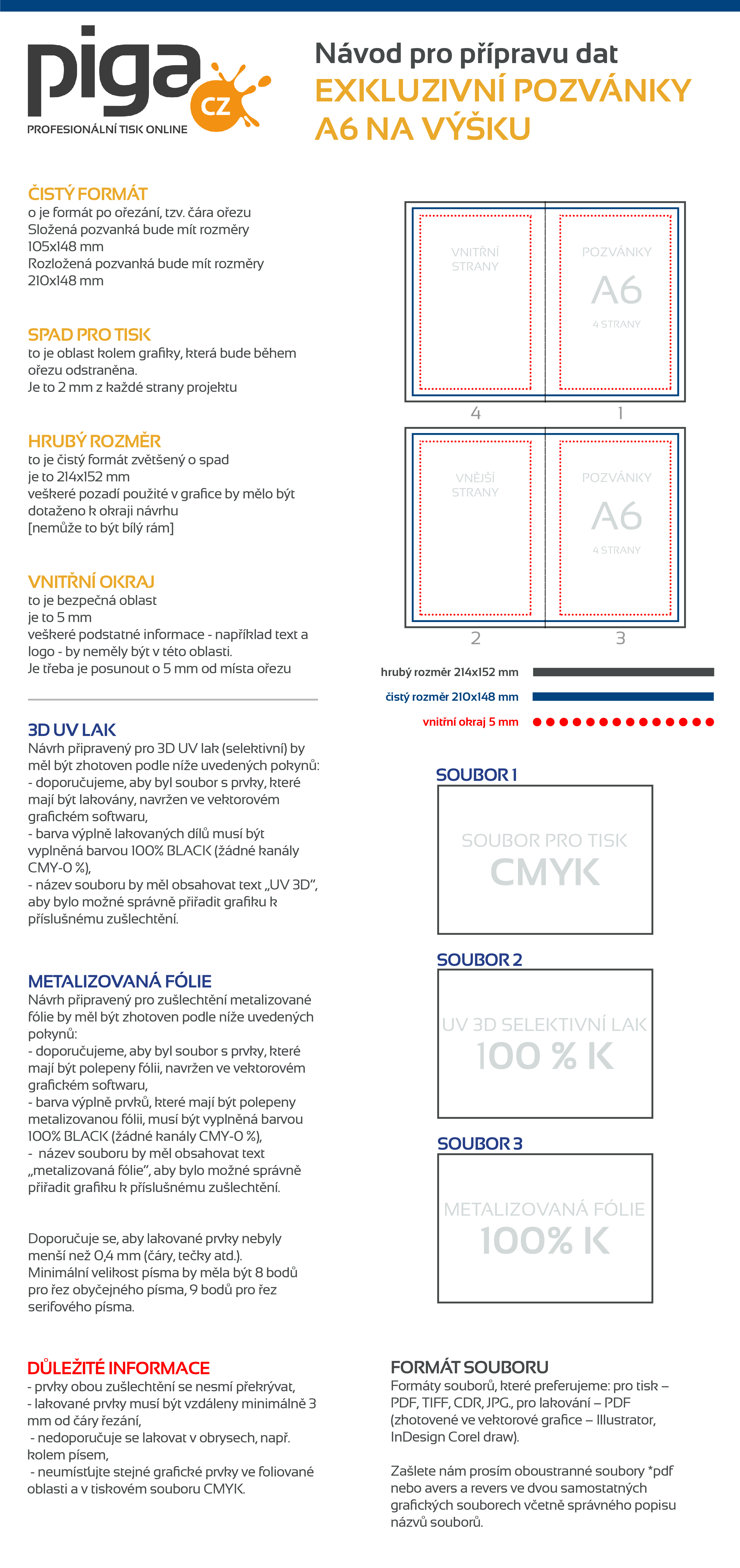 Dejte svým hostům pocítit, že jsou výjimeční. V současné době posíláme pozvánky převážně elektronicky – prostřednictvím e-mailu nebo sociálních médií. Tento způsob akceptujeme, ale stačí to k tomu, aby vaši hosté věděli, že jsou pro vás důležití? Jak důležitým prvkem kultury je vhodně zhotovená pozvánka, nás učili již na základní škole. Díky exkluzivním pozvánkám zhotoveným na papíře nejvyšší kvality poskytnete svým hostům neuvěřitelný pocit výjimečnosti. Místo internetového oznámení dopřejte svým hostům ručně a kaligraficky psané slovo „Vážení“. Konvexní úprava a lesk přitáhnou rychle a účinně pozornost příjemce. Odmítnout takto exkluzivně a pečlivě zhotovenou pozvánku bude těžké. To zcela jistě zajistí vysokou návštěvnost vaší akce.
