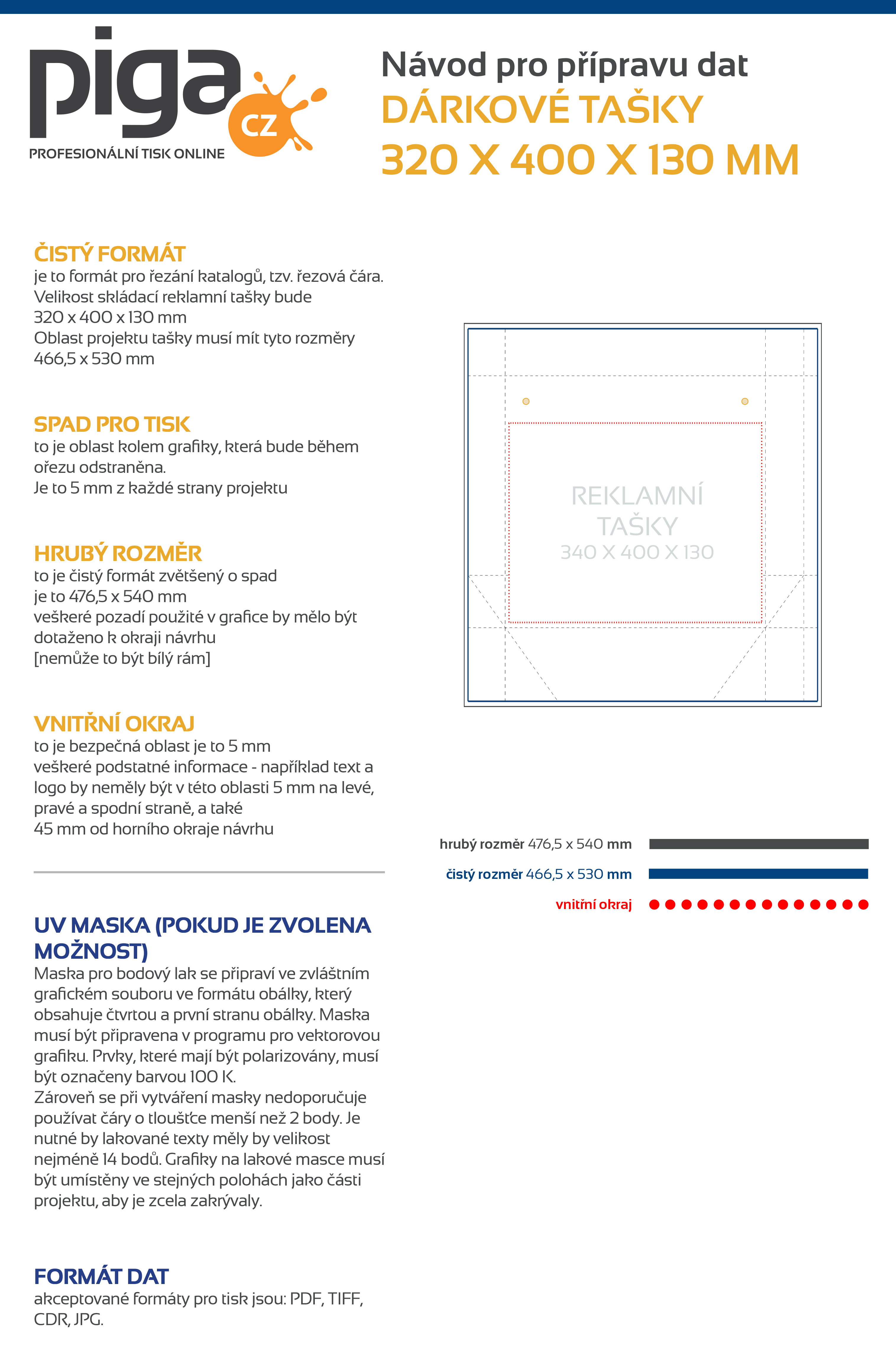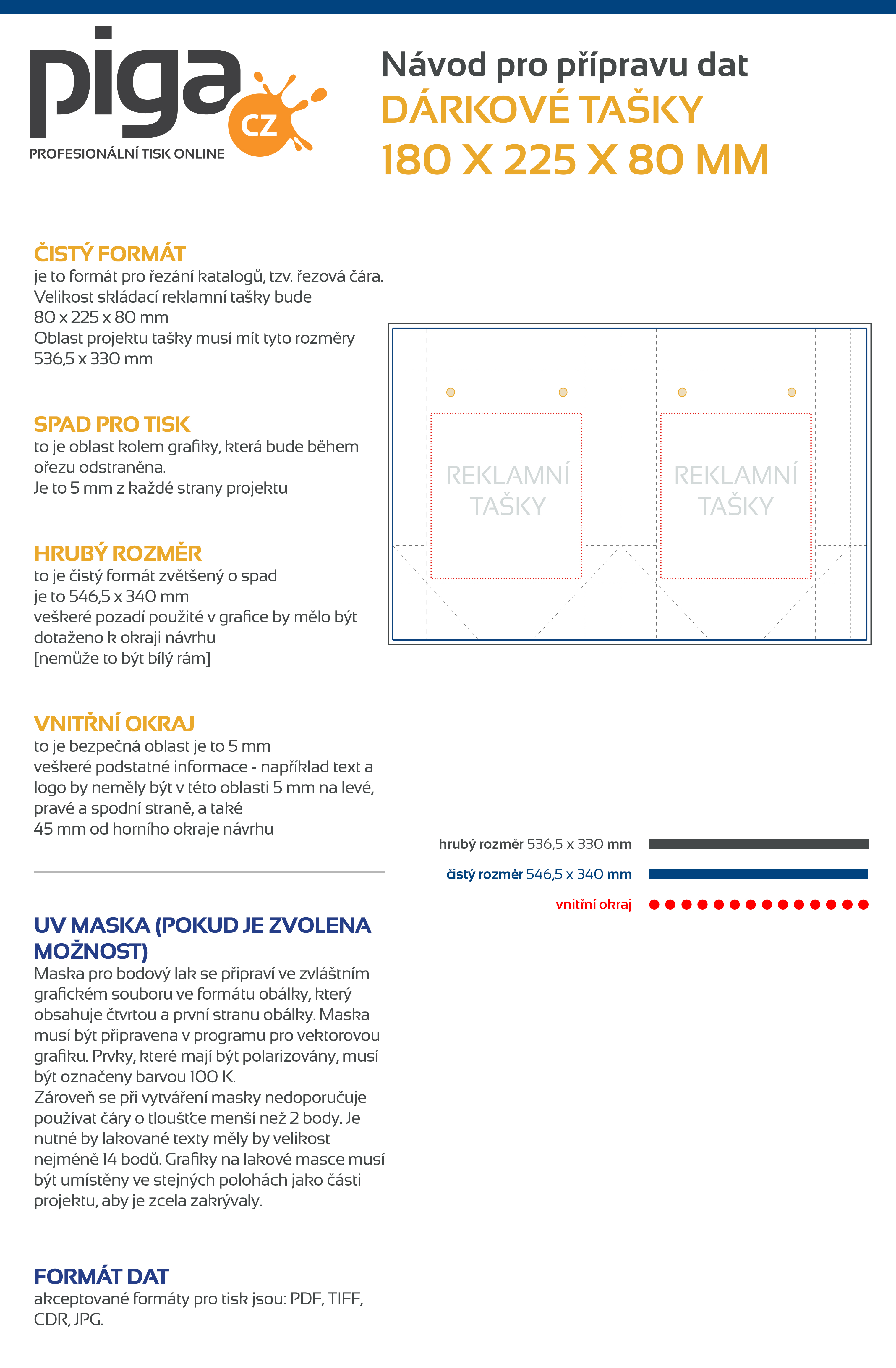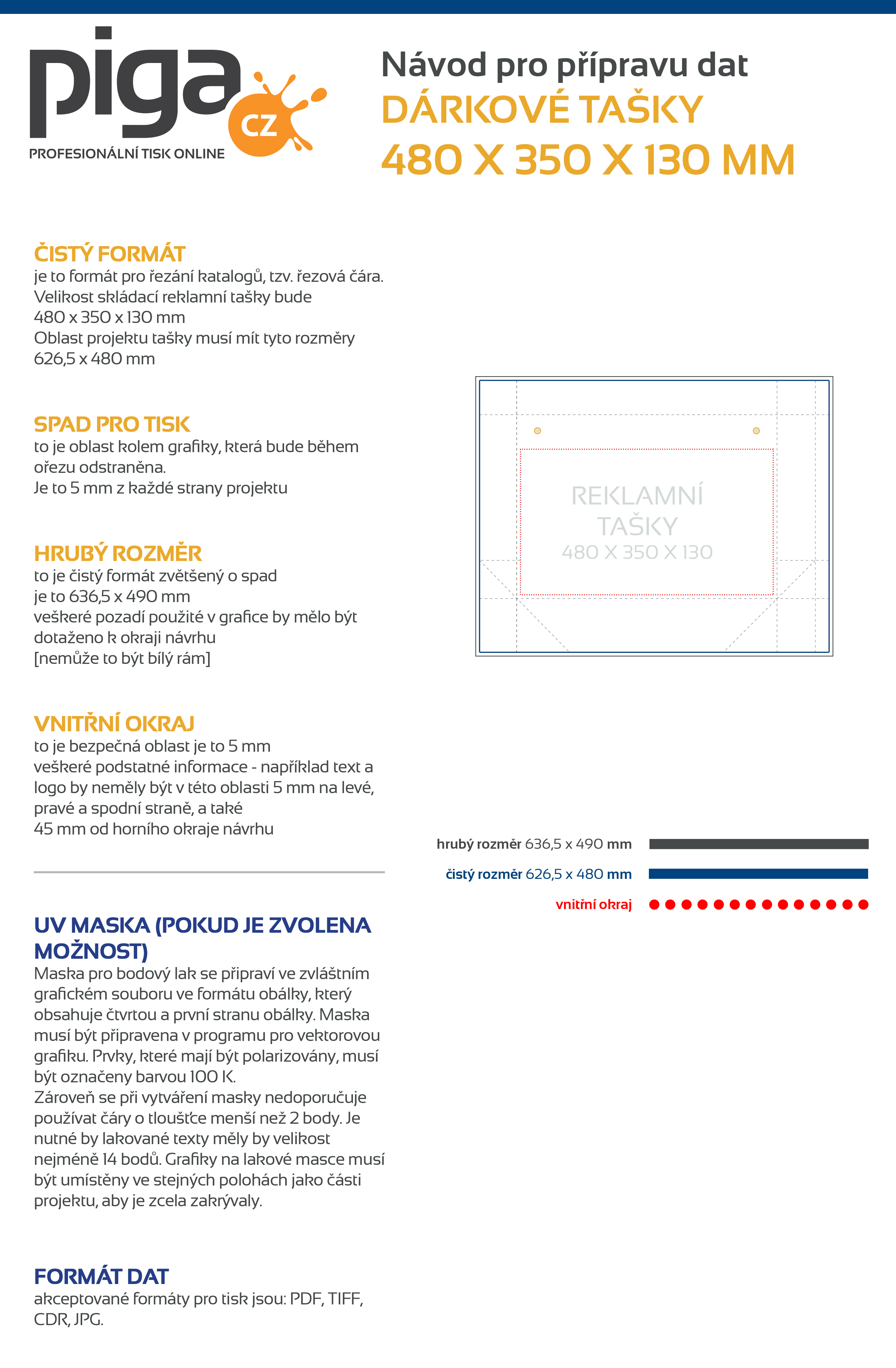 Naše preferované formáty souborů jsou PDF, TIFF a JPEG. Poskytujeme pokyny, jak připravit soubor a šablony / makety pro jednotlivé grafické programy, jejich uložením na disk získáte dimenzovanou pracovní plochu, kde můžete navrhnout svou grafiku. Klikněte na ikonu a stáhněte soubor.