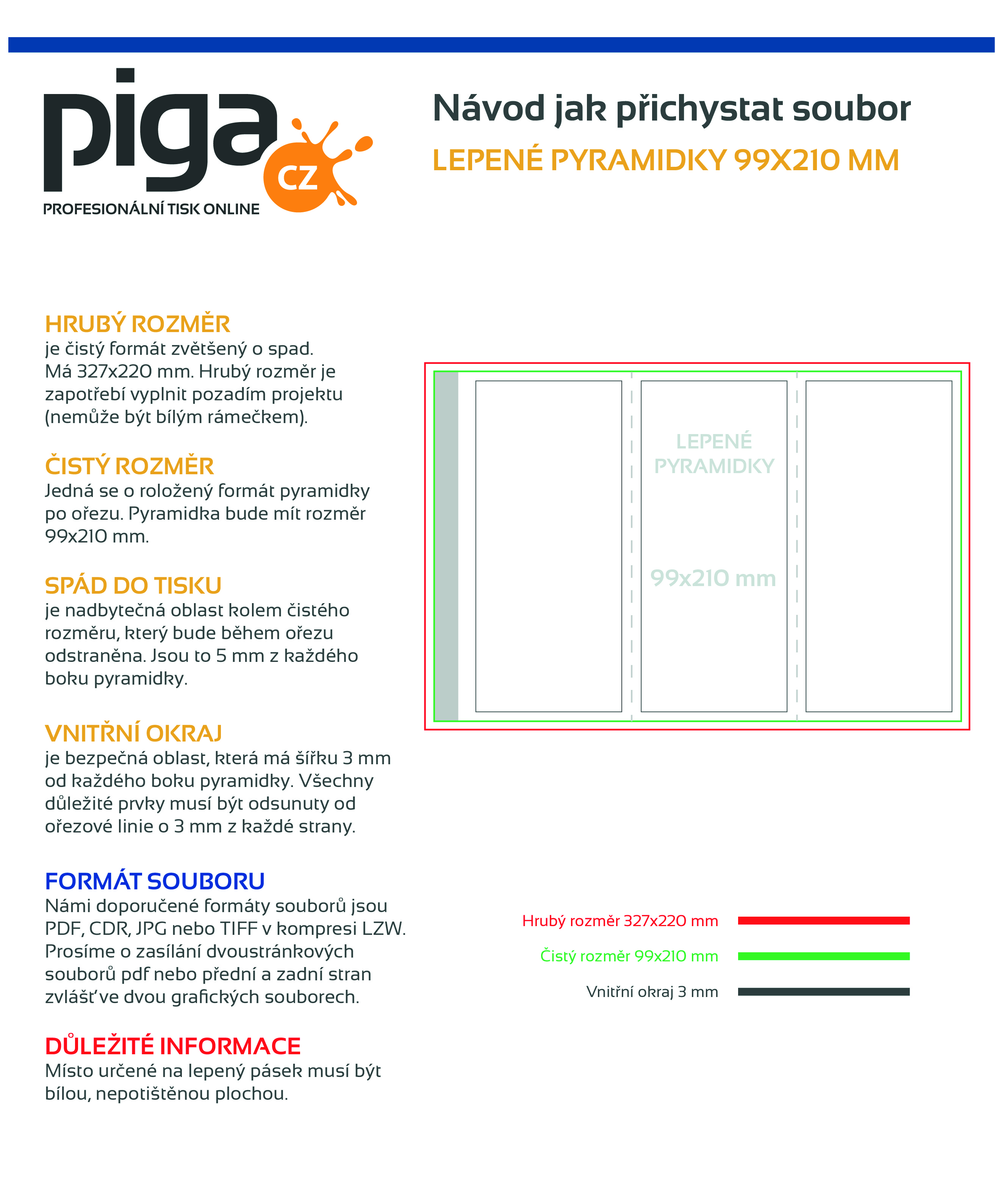 Naše preferované formáty souborů jsou PDF, TIFF a JPEG. Poskytujeme pokyny, jak připravit soubor a šablony / makety pro jednotlivé grafické programy, jejich uložením na disk získáte dimenzovanou pracovní plochu, kde můžete navrhnout svou grafiku. Klikněte na ikonu a stáhněte soubor.