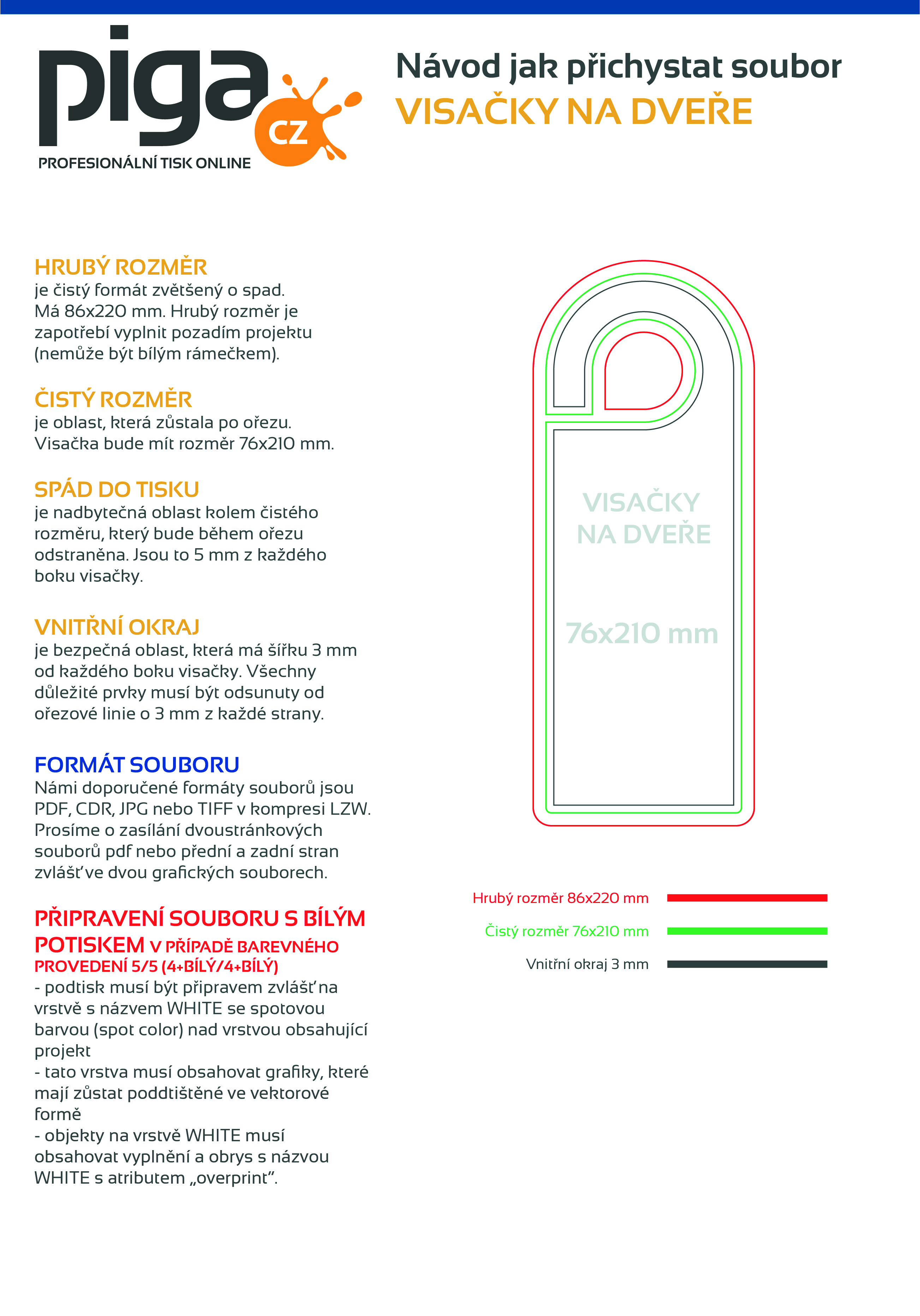 Naše preferované formáty souborů jsou PDF, TIFF a JPEG. Poskytujeme pokyny, jak připravit soubor a šablony / makety pro jednotlivé grafické programy, jejich uložením na disk získáte dimenzovanou pracovní plochu, kde můžete navrhnout svou grafiku. Klikněte na ikonu a stáhněte soubor.
