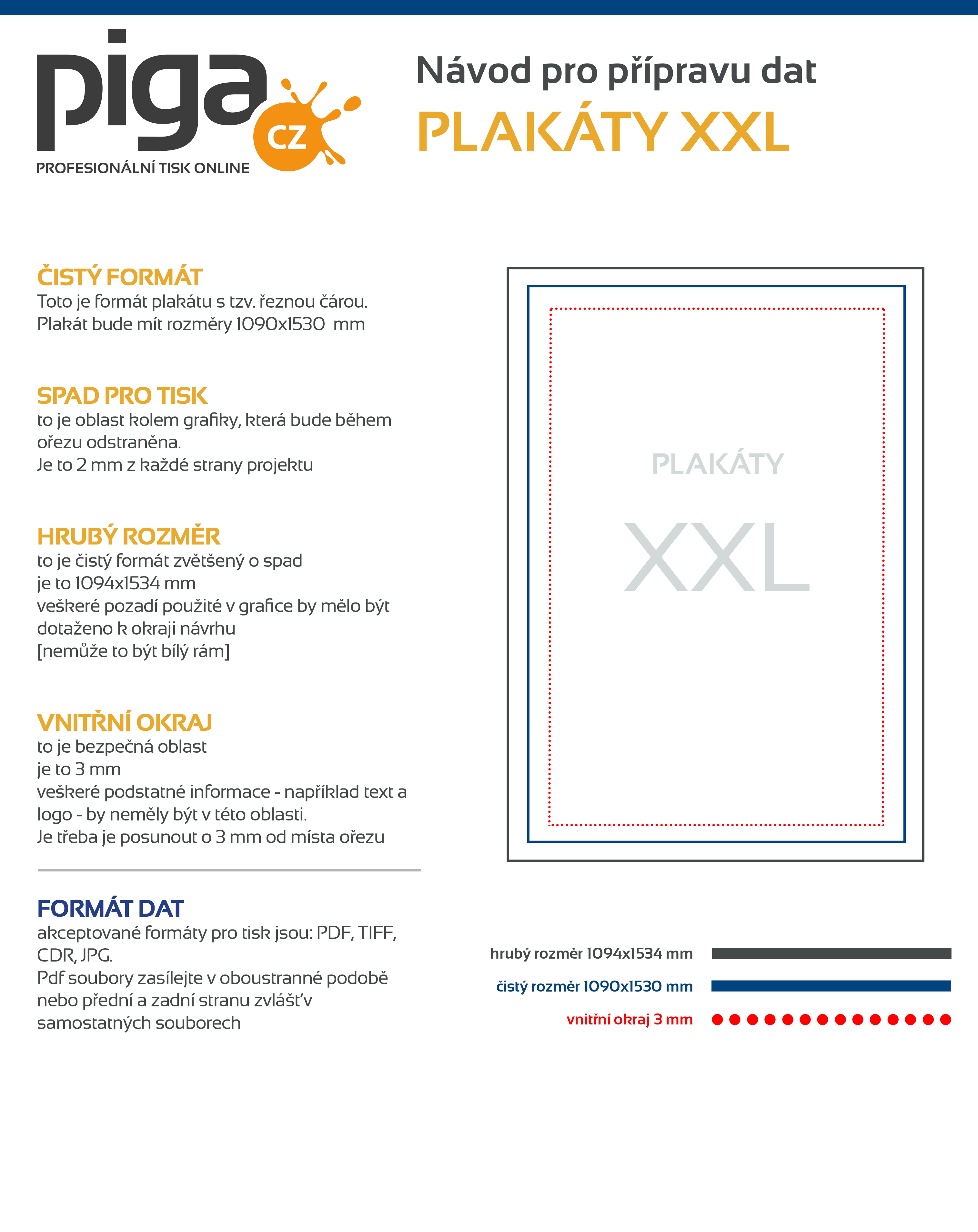 Naše preferované formáty souborů jsou PDF, TIFF a JPEG. Poskytujeme pokyny, jak připravit soubor a šablony / makety pro jednotlivé grafické programy, jejich uložením na disk získáte dimenzovanou pracovní plochu, kde můžete navrhnout svou grafiku. Klikněte na ikonu a stáhněte soubor.