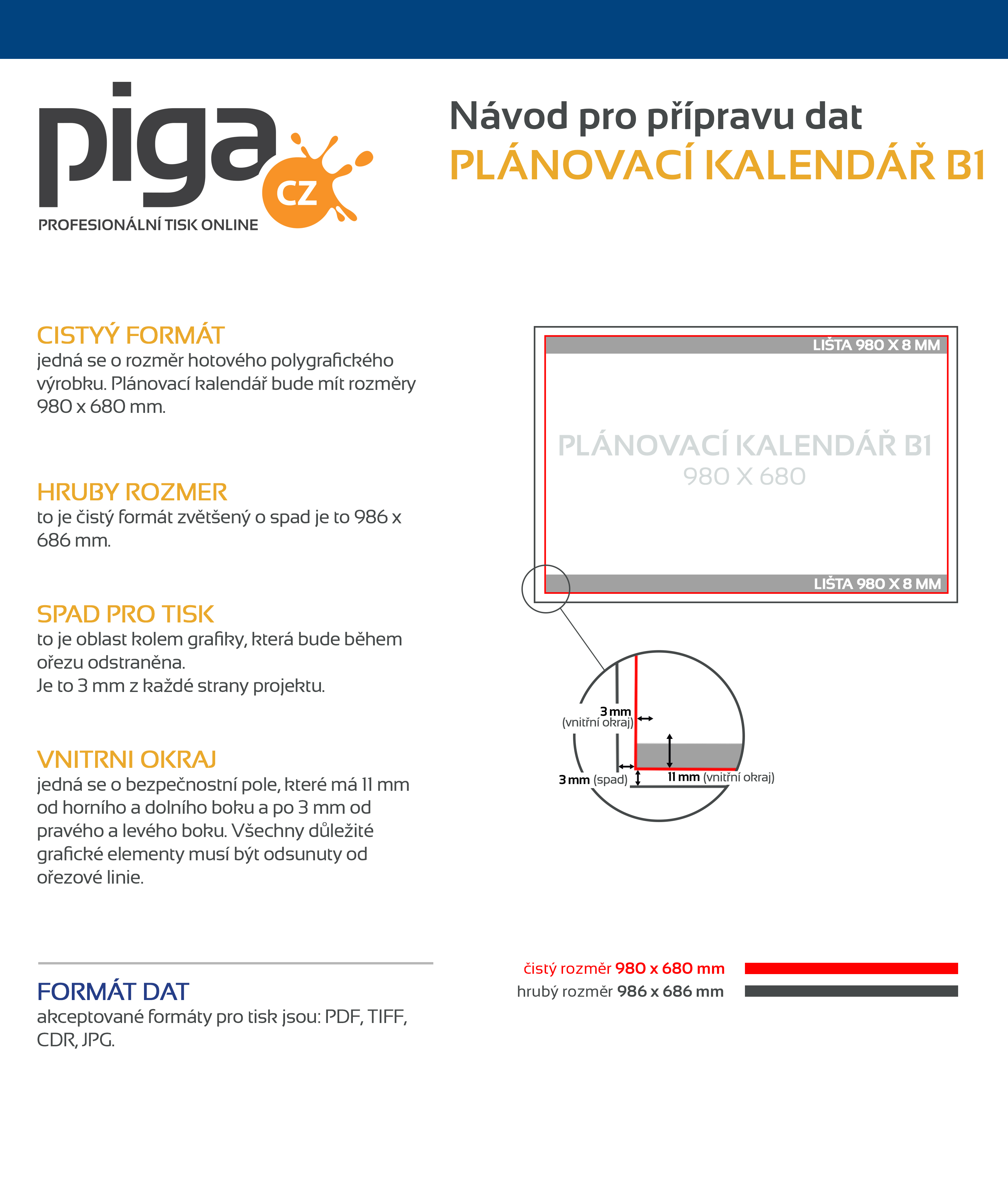 Naše preferované formáty souborů jsou PDF, TIFF a JPEG. Poskytujeme pokyny, jak připravit soubor a šablony / makety pro jednotlivé grafické programy, jejich uložením na disk získáte dimenzovanou pracovní plochu, kde můžete navrhnout svou grafiku. Klikněte na ikonu a stáhněte soubor.