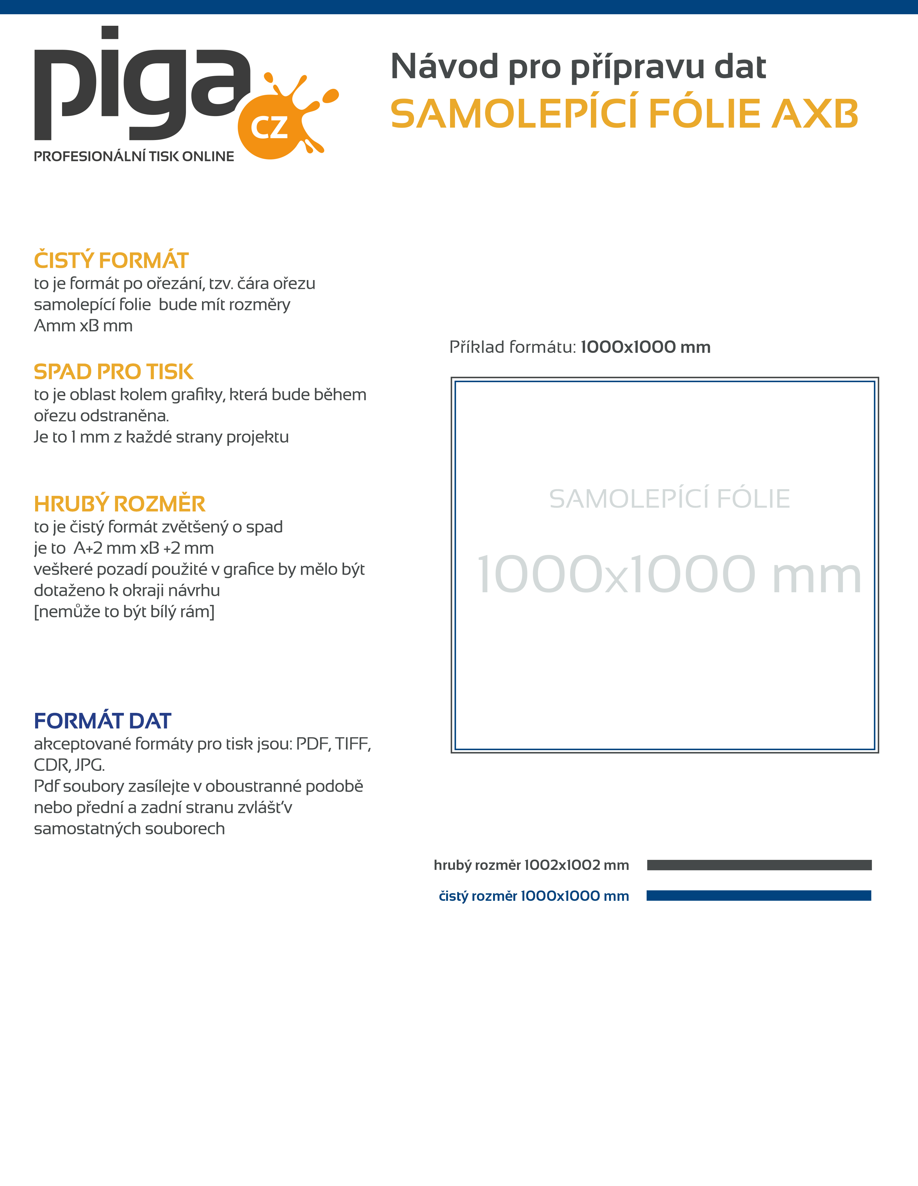 Naše preferované formáty souborů jsou PDF, TIFF a JPEG. Poskytujeme pokyny, jak připravit soubor a šablony / makety pro jednotlivé grafické programy, jejich uložením na disk získáte dimenzovanou pracovní plochu, kde můžete navrhnout svou grafiku. Klikněte na ikonu a stáhněte soubor.