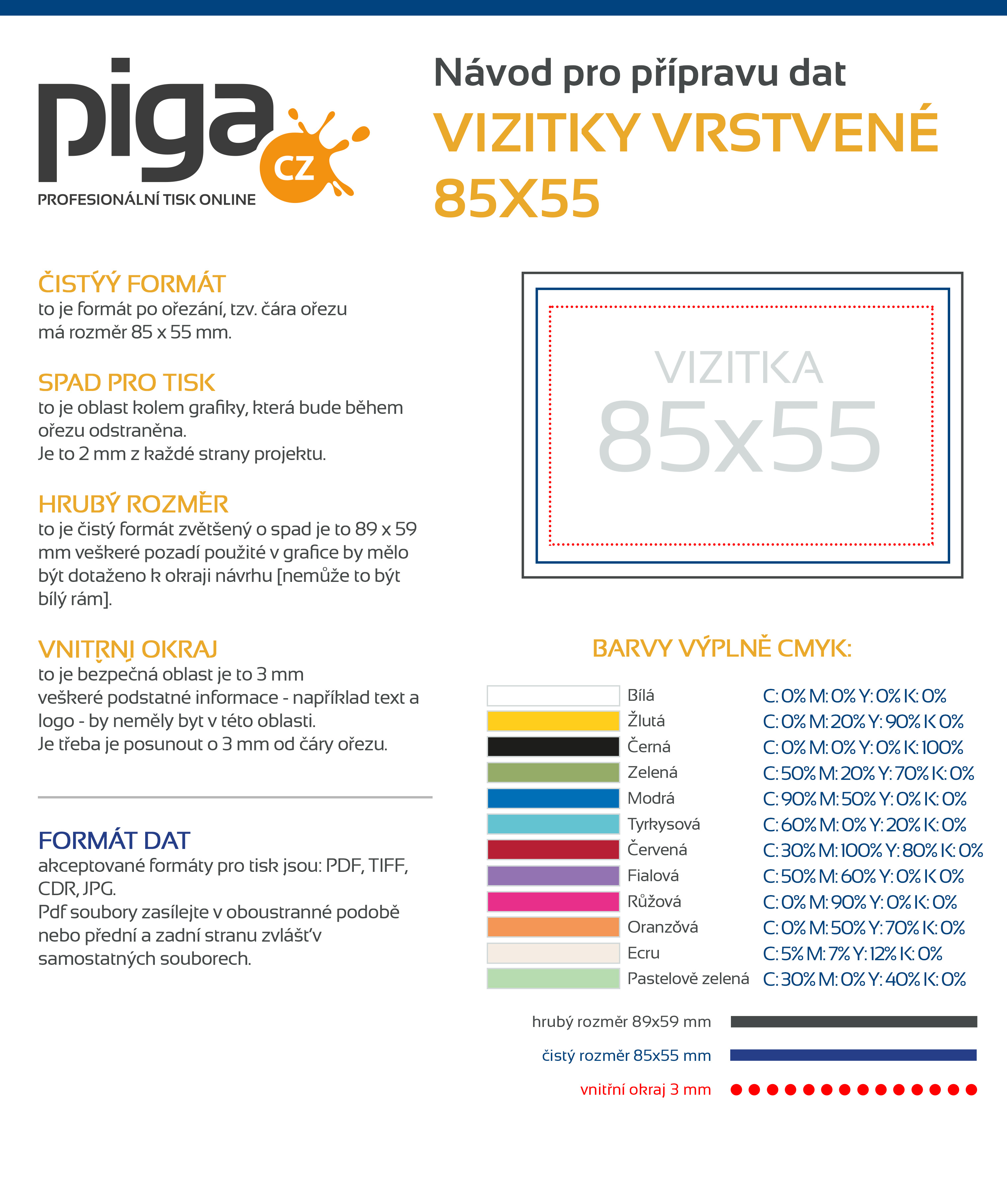 Naše preferované formáty souborů jsou PDF, TIFF a JPEG. Poskytujeme pokyny, jak připravit soubor a šablony / makety pro jednotlivé grafické programy, jejich uložením na disk získáte dimenzovanou pracovní plochu, kde můžete navrhnout svou grafiku. Klikněte na ikonu a stáhněte soubor.